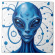 Scary alien with a blue head, science fiction, grunge, strong face, intricate art. Modern artistic design for holiday gifts.