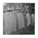 Estes headstones velhos, de pedra marcam sepulturas no cemitério do monte do louro. Os cemitérios históricos podem ter o gótico, delével, ou qualidades assustadores a eles. Esta foto preto e branco molda uma luz austero, desolada, assustador na necrópolis. Alguns encontram cemitérios assustadores, amedrontando, ou macabramente. Outro encontram cemitérios calmos e bonitos.