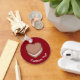 Biscoito em forma de coração cheio com creme cor-de-rosa. Cor de fundo personalizada. Texto personalizado de ambos os lados.