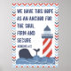 Esta poster de tema náutico tem uma borda de diafrão em azul, vermelho e cinza, assim como um farol de faixa vermelha e branca com ondas oceânicas ao seu redor. Uma baleia azul vem à superfície. O texto diz que temos essa esperança como âncora para a alma, firme e segura". Personalize o texto se quiser revisar o texto. Este texto baseia-se no hebraico 6:19. Outros tamanhos disponíveis para este poster. Se os itens não tiverem o tamanho correto, apenas me envie uma mensagem e eu posso ajustá-la para você.