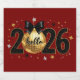 A radiant red canvas welcomes 2026 with shimmering numbers and a graceful “hello.” Surrounded by golden stars and celebratory sparkles, this design captures the magic of fresh beginnings and midnight wishes.