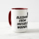 Comece seu dia com um lembrete de resiliência e força com nossa caneca 'Sangrando de Feridas Invisíveis'. Este design impressionante simboliza as lutas silenciosas que muitos rostos enfrentam, fazer que seja um companheiro perfeito para o café ou chá matinais. Criada para aqueles que apreciam arte que fala ao coração, esta caneca convida à introspecção e incentiva conversas sobre saúde mental e bem-estar emocional. Seja para si mesmo ou como um presente pensativo, é uma poderosa peça de declaração para qualquer um que navegue nas complexidades da vida