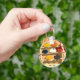 Esta design é uma casa de galinha. As galinhas estão sentadas numa barreira e há ovos no fundo. Esta galinha design parece excelente nesta Chaveiro
