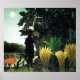 Henri Rousseau Cobra Charmer poster. Pintura a óleo na canvas desde 1907. Uma das pinturas mais cativantes da selva de Henri Rousseau, A Cobra Charmer retrata um misterioso flautista coberto de cobras encantadores na escuridão, da folhagem da selva. O encantador fica na borda de um rio ao lado de uma ave-d'água rosa enquanto as cobras escuras deslizam em direção ao som da flauta. A lua brilha no céu noturno, e as palmeiras oscilam à distância. Um belo presente para fãs Henri Rousseau, primitivismo, impressionismo poste, pinturas na selva e arte francesa.