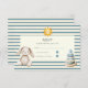 This charming response card features a delightful watercolor illustration of a soft stuffed bunny, a cheerful sun, and a stacking ring toy, all set against a backdrop of classic blue and cream stripes. It's the perfect way to gather RSVPs for your little one's upcoming baby shower. The design evokes a sense of gentle joy and playful innocence, making it an ideal choice for welcoming a new baby. The clean layout ensures your guests can easily fill in their name and indicate their attendance status with a simple check. Let this sweet card set the tone for a memorable and heartwarming celebration.