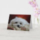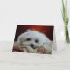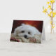 Este Cartão de Saudação de Vazio bonito apresenta Hermes, um doce pequeno Cachorro Maltês. Ele está deitado numa almofada de tapeçaria olhando para o jardim pouco antes da sua soneca da tarde.