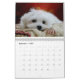 Este calendário bonito caracteriza Hermes, um filhote de cachorro maltês pequeno doce.