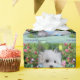 Papel de papel de embrulho bonito que caracteriza Hermes, um filhote de cachorro maltês pequeno bonito.