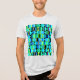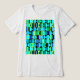 Formas geométricas vibrantes formam um padrão com tons, azuis e amarelos, pretos. As faixas alternantes acrescentam dinamismo à composição, criando um efeito vivo e colorido.