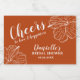 Etiquetas de mini vinho espumante para chá de noiva apresentam um elegante contorno branco de flores de hibisco havaiano tropical em um fundo de ferrugem (altere para QUALQUER COR DE FUNDO para combinar com sua ocasião.) MAIS cores em nossa loja.