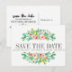 Concebido para combinar com a nossa coleção de casamento floral em aquarela Tropical Hibiscus, rodeado por delicadas flores de verão pintadas e folhas tropicais sobre um fundo branco, este design é atraente e muito bonito. O cartão de aviso de "salvar data" moderno e simples aparece no centro entre a folhagem e um modelo de cartão postal está no verso. Todo o estilo de texto, cores e tamanhos também podem ser modificados para atender às suas necessidades