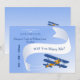 Um anúncio de Save-the-Date de tirar o fôlego com um avião antigo e uma faixa. As palavras "você quer se casar comigo?" podem ser aumentadas ou diminuídas (+-) ou eliminadas, permitindo que você escreva sua própria mensagem. (FP)