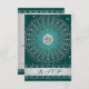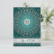 Este cartão de resposta de casamento dramático em verde-teal e cinza-prata tem um medalhão central removível com aparência de FAUX gravado em prata com o deus hindu Ganesha, juntamente com um grande padrão de círculo de pergaminho cinza-prata no centro, com detalhes de corações enfeitados e estrelas e pontos prateados que se sobrepõem a um fundo verde-teal profundo com outra camada de espirais e pergaminhos azul-aqua brilhantes que combinam com os convites de casamento mostrados abaixo. ****POR FAVOR, OBSERVE que nenhum dos elementos deste convite é elevado ou em relevo. Tudo é impresso plano. Este convite seria perfeito para uma cerimônia de casamento indiana, hindu, sânscrita ou muçulmana na primavera, verão, outono ou inverno, e também funcionaria bem para outros eventos formais que exigem classe e bom gosto. É mostrado aqui em papel básico. Se você quiser um papel mais pesado, sugiro o papel metálico gelo ou champanhe, que daria um brilho opalescente adorável. NÃO sugiro usar o papel metálico dourado,