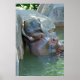 Foto de um hipopótamo (hipopótamo) levantando a cabeça para fora da água, tirada num zoológico local.