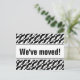Hipster movendo cartões postais com impressão de bigode preto. Texto de movimentação personalizado; nós movemos! Adicione seu novo endereço no verso. Novos cartões modernos para casa e negócios.