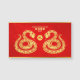 Corte de papel Cobra de ouro duplo chinês com ideograma vermelho chinês para Cobra no centro em um círculo ouro + "Feliz ano novo" em inglês e chinês em papel texturizado vermelho (imagem impressa) como fundo. Design no cartão magnético horizontal. Cartão de saudação, Cartão-postal Feriado, imã, adesivo, produtos de artesanato e muito em breve... Perfeito para o Ano Novo Chinês do Cobra 2025 ou Aniversário (nascer pessoas no Ano Cobra).