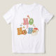 Ho Ho Groovy Feliz Natal As T-Shirts femininas apresentam o texto festivo colorido "Ho Ho" na tipografia moderna, acentuado por estrelas, canetas doces, bolas de discoteca e Papais noeis. Perfeito para o Natal e feriados/ Criado por feriados Evco www.zazzle.com/store/evcoholidays