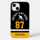 Este capas de iphone-companheiro é uma maneira incrível de mostrar seu amor pelo hóquei e apoiar sua equipe esportiva favorita! Ele tem um design único com fundo preto e amarelo, texto branco em fonte esportiva e uma silhueta de um jogador de hóquei. Além disso, você pode personalizá-la com sua própria mensagem pessoal, fazer-a como um presente perfeito para qualquer fã de esportes em sua vida. Quer você esteja procurando um presente especial para o Natal, Dia de os pais, Dia de as mães, aniversário, ou qualquer ocasião, este caso certamente será um sucesso. É também um excelente para a sua equipe dar!