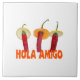 Hola Amigo. Três pimentões quentes, três amigos em sombreros. Texto Hola Amigo. Impressões, presentes e camisas engraçados por diversão e bom humor.