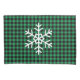 Pillowcase is shown in a black and green buffalo plaid snowflake print.