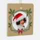 Celebre a temporada de festas com este ornamento fotográfico que apresenta um quadro decorativo de fitas de ouro e holly com sotaque de arco vermelho. A fronteira é bronzeada com uma aparência texturizada digital. Substitua a sua foto especial por um presente perfeito de feriado. (Coloque a imagem do titular Shutterstock/Marco Govel)