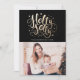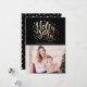 Dazzle seus amigos e família nesta temporada de festas enviando a eles um belo cartão com fotos de festas! O cartão com fotos de feriado apresenta uma tipografia na moda, escrita à mão com as palavras "Holly Jolly" e estrelas num estilo de folha de ouro falso e cintilante contra fundo preto. A parte de trás da design apresenta um design de estrela branca e ouro giro. Personalize suas cartões de natal festivas adicionando sua foto favorita e seu texto personalizado.