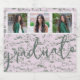 Um roteiro moderno e rótulo da garrafa de vinho espumante de graduação dupla com 3 fotos personalizáveis do seu formando e belas fontes com um fundo cor-de-rosa Colinas de Hollywood. Maneira divertida de personalizar essa garrafa de licor, vinho ou azeite do mercado local.