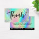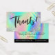 Obrigado por sua inserção no pacote de cartão de desconto do cliente em uma fonte descontraída e flexível com um fundo fantástico de galáxia arco-íris. Personalize completamente o texto e os ícones das mídias sociais para sua marca. Obrigado seus clientes e clientes para comprar com você, incluindo isso com seus pacotes e produtos para dizer Obrigados e para dar a eles um código de cupão para uma compra futura, para encorajar a repetição de negócios e encontrar você nas mídias sociais. Você pode adicionar ou remover ícones das mídias sociais (Twitter, Instagram, TikTok, Pinterest, Snapchat, Youtube, Facebook, etc.) escolhendo "personalizar mais" e ligando-os/desligando-os no painel de camadas e também pode editar as cores!