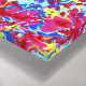 Esta reprodução vívida e colorida de uma trabalho de arte de tinta gotejada na canvas certamente iluminará qualquer parede. É arte feliz.