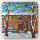 Homenagem a Lawen Harris Porta copos set por Sandra Kiki Thome. Uma cena de neve de casas da vila. Impressão de pintura acrílica original na canvas. ©Sandra J. Thome ©Thome