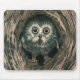 Esta coruja marrom pequena está espreitando fora de seu furo.