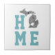 Home É Michigan O Excelente Lake State Cerâmica Azulejo Decor. A letra azul-lacrimogênea com a forma de Michigan como "O". Michigan está cheia de um impressão floral em cinzas e azul com um coração branco. Mostre seu amor pelo seu estado natal! Design de The Michigander.