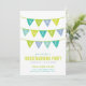 Convite de festas de design de aquecimento doméstico simples e simples, com um adorável sinalizador de revestimento de várias cores que diz HOME SWEET HOME em uma fonte manuscrita com espaço para adicionar os detalhes da sua festa abaixo. Coordenando o padrão colorido de distribuição de pré-disquete impresso no verso. Clique no botão PERSONALIZAR TI para personalizar fontes, mover texto e criar seu próprio design de convite exclusivo.