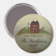 Design da casa da caixa de sal Prim em uma imã de geladeira redonda que você pode personalizar com seu próprio nome ou outro texto.