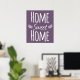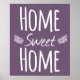 Este poster adorável é o sotaque perfeito para qualquer quarto em sua casa. É um poster roxo que apresenta um design tipográfico que diz "Home Sweet Home". A palavra doce é acentuada por folhas de ambos os lados.