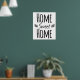 Este poster adorável é o sotaque perfeito para qualquer quarto em sua casa. É um poster branco que apresenta um design tipográfico que diz "Home Sweet Home". A palavra doce é acentuada por folhas de ambos os lados.