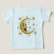 Entre num mágico noite estrelada com esta encantadora ilustração vintage. Este design apresenta uma charmosa lua crescente antropomórfica com um rosto sorridente e alegre, rodeada por uma cascata de estrelas douradas cintilantes e espirais caprichosas num clássico fundo preto. O estilo de arte retrô evoca uma sensação de nostalgia e admiração, tornando-o uma escolha perfeita para sonhadores e amantes da arte celestial e mística. Uma peça atemporal e mágica para qualquer ocasião.