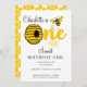 Uma vibrante abelha de ouro amarelo e mel preto, colmeia e pente de mel primeiro convite de aniversário. Whimsical e fofo. Você pode personalizar isso para uma garota ou um garoto. Simplesmente mude o nome e o texto de gênero. Pente amarelo de mel de ouro na parte de trás do convite.