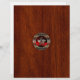 Um símbolo de flor de orquídea de Hong Kong é cromo como uma incisão de rubi em um fundo de impressão de madeira de estilo mogno oferecido nesta bela prenda personalizada para fazer para você mesmo ou para alguém especial na sua lista.
