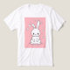 Este coelho fofo sobre um delicado fundo rosa parece tão charmoso e engraçado que não pode deixar de deliciar o olho e fazer você sorrir. Refletindo a alegria divertida do primavera e da felicidade, este design é perfeito para crianças, amantes de coelhos e qualquer um que aprecie arte encantadora. Será uma maravilhosa decoração para camisetas, criando uma atmosfera fabulosa em todos os lugares.
