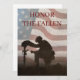 Honra os caídos com uma última saudação. Em homenagem aos nossos membros mortos das forças armadas. Os joelhos soldados em frente ao túmulo do camarada caído. Ao fundo, a bandeira dos EUA.