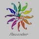Rodas coloridas representadas em folhas estilizadas que se estendem do centro do círculo. Roda grande na parte de trás, roda pequena no "bolso" da frente da camisa. Personalize frente com nome. presente de excelente para o artista visual.