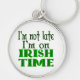 Uma chaveiro que lê que não estou atrasado, estou no tempo irlandês, com letras Celta. Personalize-o para adicionar seu nome ou mensagem personalizada.
