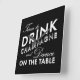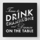 "Hora de beber champanhe e dançar na mesa" acentua esse relógio bonito na parede.