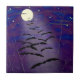 A hora do feitiço está chegando. Divertido com morcegos, lua de cheio, estrelas e silhuetas de árvores neste azulejo de cerâmica quadrada!