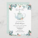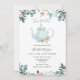 Está na hora do chá com a mamãe! Este convite para chás de fraldas, tema divertido, para o chá apresenta um bule branco de aquarela cercado por verde, eucalipto e flores cor-de-rosa. Personalize com suas informações ou clique em "Clique para personalizar mais" para editar estilos de fonte, tamanho e cores.