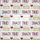 Apresenta uma ilustração original de um copo de vinho tinto e uma cunha de queijo cremoso brie, com SNACK TIME em caracteres divertidos. Excelente para a elaboração e a costura de vinho ou de alimentos.