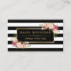Este "Cartão de Nomeação de Bela Salão de Bela Lata Branca Floral Floral" é a forma perfeita de adicionar um toque de elegância e profissionalismo à sua empresa. O cartão apresenta uma bela decoração floral sobre um fundo de listras brancas pretas com uma estrutura dourada para o nome e a informação do salão. Com este cartão, você pode agendar facilmente compromissos e fornecer aos seus clientes todos os detalhes de que eles precisam. Ele pode ser usado por qualquer negócio relacionado à beleza, como cabeleireiro, maquiador, spa ou dono de salão. Com a ajuda da ferramenta design de Zazzle, é fácil personalizar esta modelo para torná-la sua e refletir sua marca pessoal. Imprima os seus clientes e destaque-se no setor com este cartão impressionante.
