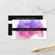 Cartões de marcação a aquarela para seu salão, spa ou serviços de beleza apresentam seu nome ou nome de sua empresa em uma banda fina de preto, em camadas sobre uma ilustração florescente de tinta em tons brilhantes e coloridos de cor rosa fuchsia, magenta e violeta. Adicione sua política de cancelamento, cabeçalho personalizado e informações de contato ao fundo em branco em preto nítido. Inclui espaço para escrever na data e hora do próximo compromisso do cliente.
