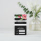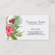 Listras horizontais brancas e pretas e flor rosa rosa-rosa-rosa-havaiana. Modelo de cartão de negócios de compromisso personalizável